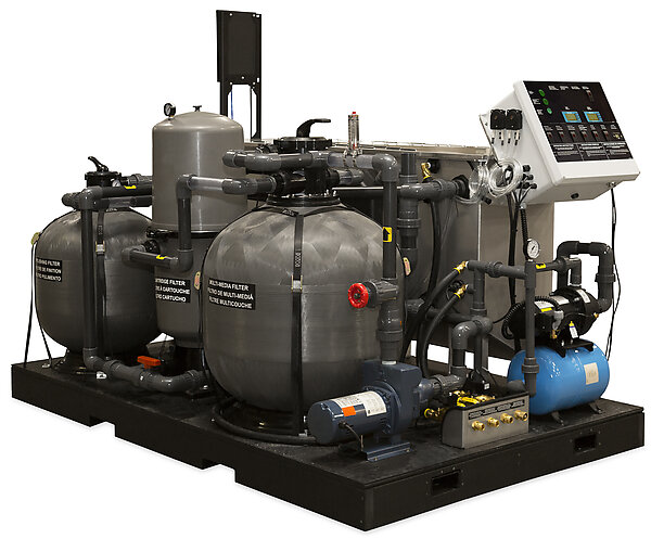 These recycle systems are designed to remove free hydrocarbons and filter water to be sent back through a pressure washer. They feature pH and ORP injection and are designed with corrosion-resistant tanks.