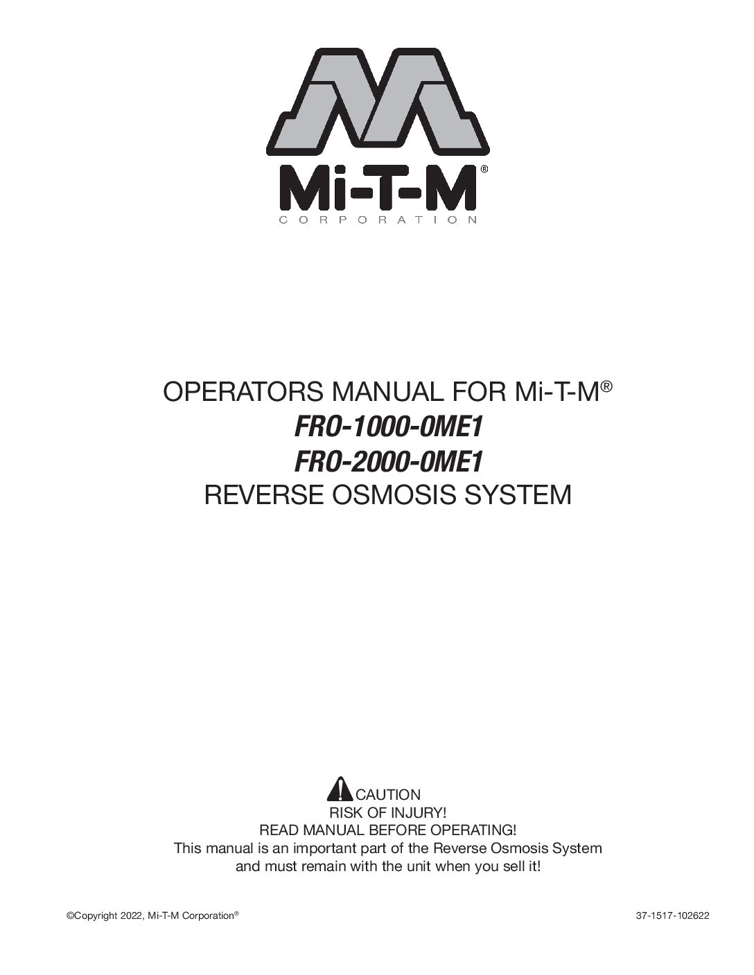 | FRO-1000-0M10 | 2.0 @ 200 | 0.7-0.8 GPM | 1/2 HP | 120V, 1Ø, 15.0A | 8.0 A |
