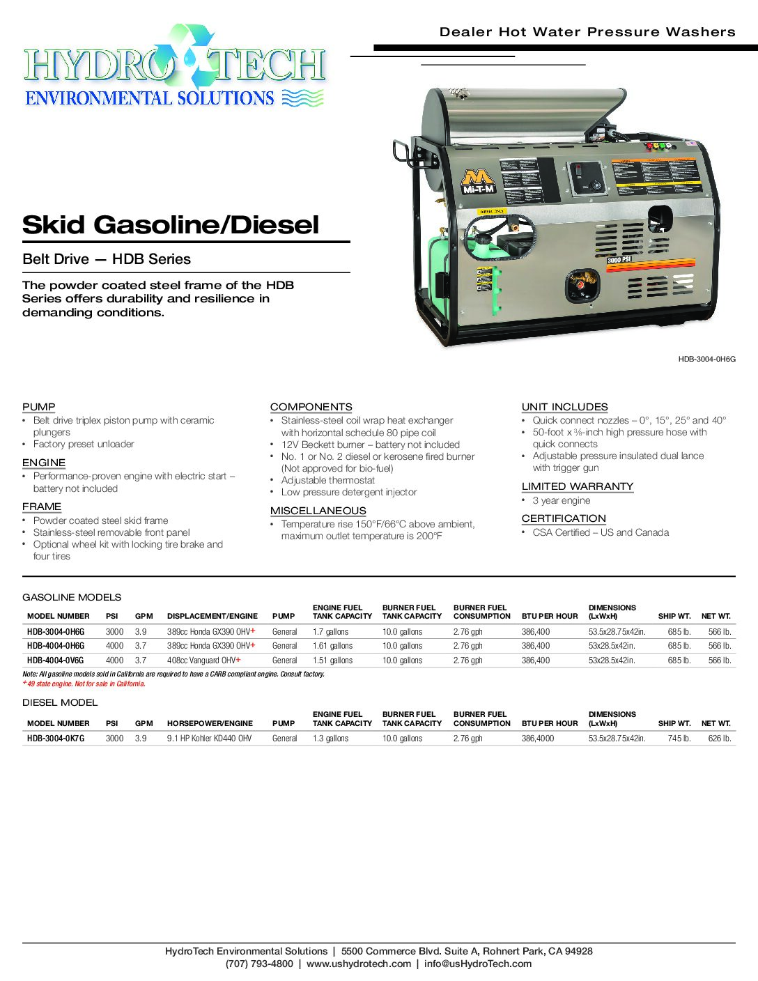 Note: All gasoline models sold in California are required to have a CARB compliant engine. Consult Factory.