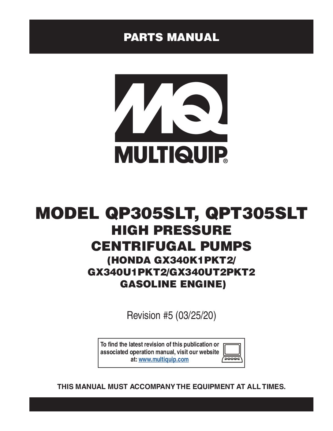 Multiquip’s versatile, multipurpose high pressure centrifugal pump handles all types of clear water applications, no matter how much water needs to be moved. The QP305SLT is our highest volume high pressure pump. Good for fire fighting and jetting applications and for moving up in those high-head jobs.