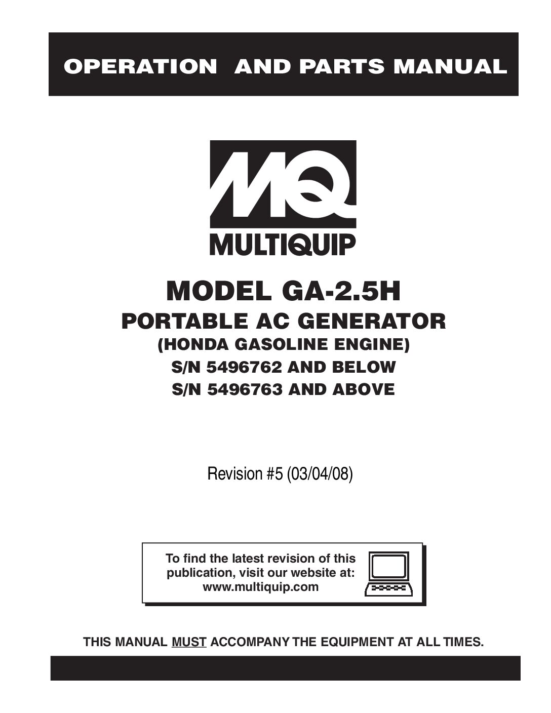 - Powered by Honda GX240 engine with low-oil shutdown and idle control