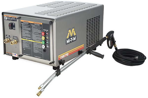 Food and beverage industries use this stationary series to keep floors, worktables and appliances spotless. It is also a great addition to any wash bay.