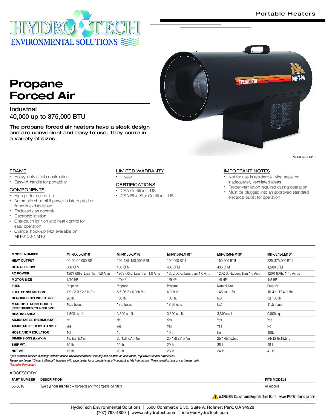 These lightweight, portable heaters are ideal for drying and heating well ventilated workspaces. Add a propane cylinder, plug it in and stay comfortable while you work.